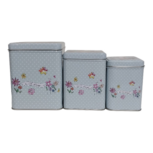 قوطی فلزی مکعب مستطیل در سه سایز کوچک، متوسط و بزرگ عرضه میشود تا بسته به نیاز خود بتوانید از آنها به صورت تکی یا ست سهتایی استفاده کنید. درب قوطیها بهصورت چفتی و فشاری طراحی شده تا از نفوذ هوا و رطوبت جلوگیری کرده و تازگی محتویات را حفظ کند.