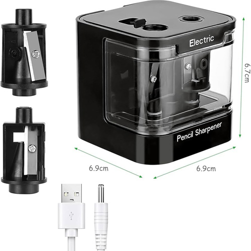 این مدل علاوه بر عملکرد با کابل USB، قابلیت استفاده با باتری را نیز دارد، که آن را برای مواقعی که منبع برق در دسترس نیست مناسب میکند. همراه دستگاه، یک کابل USB نیز ارائه شده است. این منبع تغذیه دوگانه، تراش را به گزینهای مناسب برای استفاده در خانه، مدرسه، دفتر کار یا حتی محیطهای هنری تبدیل میکند.
