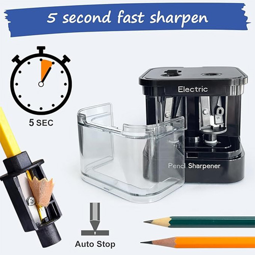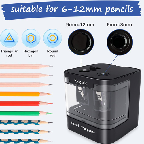 تراش رومیزی دوقلو باتریخور و شارژی، یک ابزار کارآمد و حرفهای برای تیز کردن انواع مدادهای معمولی و رنگی است. طراحی این دستگاه به گونهای است که علاوه بر عملکرد سریع، استفاده از آن بسیار آسان و ایمن باشد. همانطور که در تصاویر دیده میشود، این تراش دارای دو ورودی مستقل برای تیز کردن مداد در اندازههای مختلف است؛ ورودی کوچکتر برای مدادهای ۶ تا ۸ میلیمتر و ورودی بزرگتر برای مدادهای ۹ تا ۱۲ میلیمتر. این ویژگی باعث میشود دستگاه برای دانشآموزان، هنرمندان، طراحان و افرادی که با انواع مداد سروکار دارند بسیار کاربردی باشد.