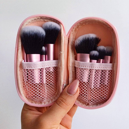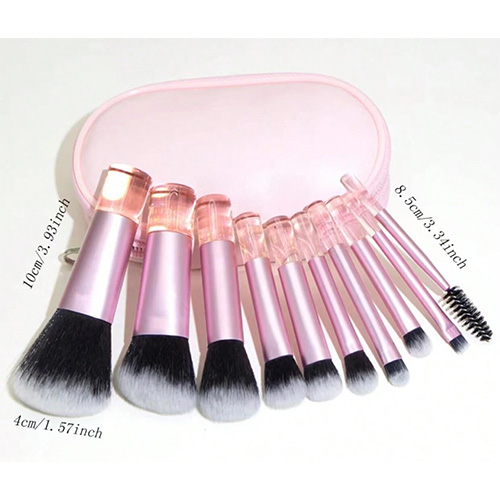 در این ست ۱۰ عدد براش با کاربردهای متنوع قرار داده شده است که نیازهای اصلی آرایشی را پوشش میدهند. از براشهای مناسب کرمپودر و پودر گرفته تا براشهای ظریفتر برای سایه چشم، رژگونه و جزئیات آرایش، همگی در این مجموعه وجود دارند. این تنوع باعث میشود بدون نیاز به حمل براشهای اضافی، بتوانید یک آرایش کامل و دقیق انجام دهید.