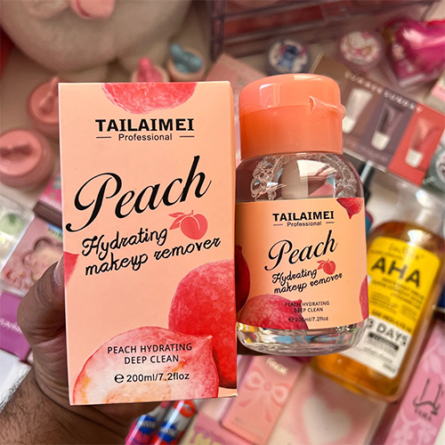 میسلار واتر پمپی رایحه هلو برند تایلامی (TAILAIMEI) یک پاککننده آرایش مایع و ملایم است که برای حذف آرایش صورت، چشم و لب طراحی شده و همزمان به آبرسانی پوست کمک میکند. این محصول بافتی شفاف و سبک دارد و بدون نیاز به شستوشو، آلودگیها، چربی اضافه و باقیمانده مواد آرایشی را از سطح پوست پاک میکند. وجود رایحه ملایم هلو، استفاده از این میسلار واتر را به تجربهای خوشایند و طراوتبخش تبدیل میکند.