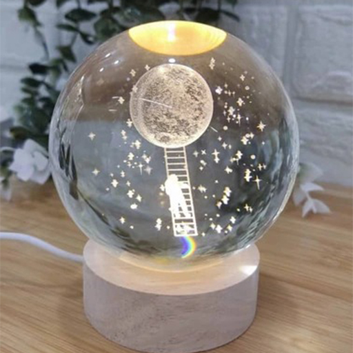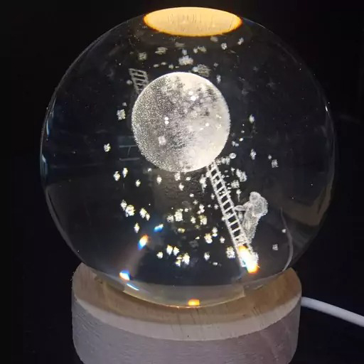 گوی این شبخواب از جنس شیشهای ساخته شده. قطر گوی ۸ سانتیمتر بوده و در دسته سایز متوسط قرار میگیرد؛ اندازهای که هم جلوه بصری مناسبی دارد و هم فضای زیادی اشغال نمیکند. نور داخلی گوی از نوع مهتابی است که روشنایی یکنواخت و ملایمی ایجاد میکند و برای استفاده در شب، بدون ایجاد آزار نوری، بسیار مناسب است.