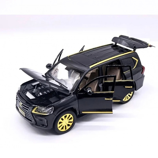 ماکت ماشین Lexus LX570 XLG با ترکیب طراحی دقیق، کیفیت رنگی قابلتحسین، بدنهی فلزی مقاوم و ویژگیهای موزیکال و نورانی، نمونهای جذاب از مدلهای Die‑Cast در مقیاس ۱:۲۴ به شمار میرود.