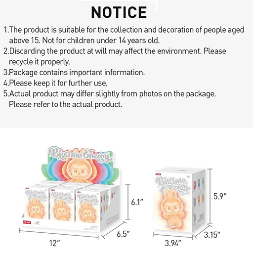 ابعاد هر عروسک برابر با 15 × 8 × 7 سانتیمتر است که اندازهای مناسب برای قرار دادن روی میز، شلف یا ویترین کلکسیونی محسوب میشود. این عروسک از نوع پشمی و نرم طراحی شده و ظاهر آن با الهام از شخصیت بامزه لبوبو شکل گرفته است. چهره خاص و طراحی فانتزی این کاراکتر باعث شده در میان کودکان و حتی بزرگسالان طرفداران زیادی داشته باشد.