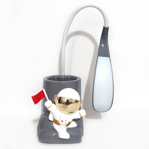 چراغ مطالعه خمشو جامدادیدار طرح فضانورد، یک محصول کاربردی و فانتزی برای میز مطالعه است که علاوه بر تأمین نور، فضای نگهداری لوازمالتحریر را نیز فراهم میکند. طراحی این چراغ با الهام از طرح فضانورد انجام شده و ظاهر آن برای کودکان و نوجوانان جذاب است، در عین حال کاربری ساده و مناسب برای استفاده روزمره دارد.