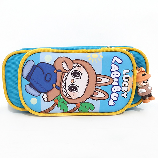 جامدادی دو زیپ آویزدار طرح لبوبو - آبی