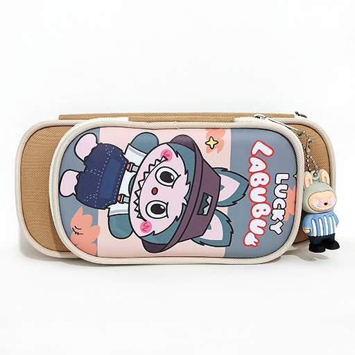 جامدادی دو زیپ آویزدار طرح لبوبو - قهوه ای