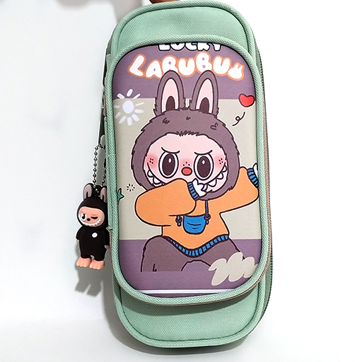 جامدادی دو زیپ آویزدار طرح لبوبو سبز