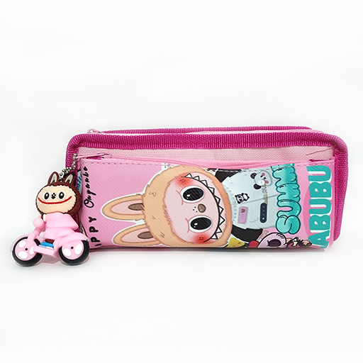جامدادی دو زیپ و آویزدار موتوری طرح لبوبو - صورتی