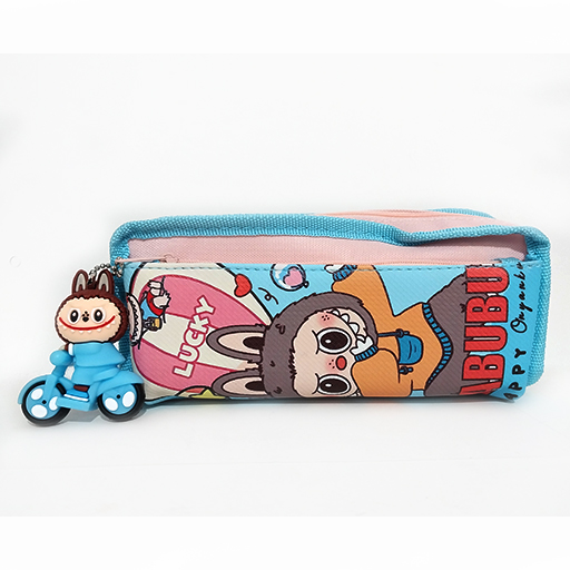 جامدادی دو زیپ و آویزدار موتوری طرح لبوبو - آبی