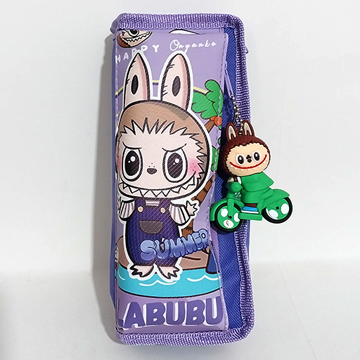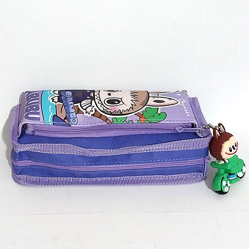 جامدادی دو زیپ و آویزدار موتوری طرح لبوبو بنفش
