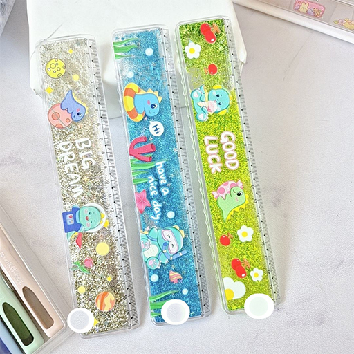محفظه این خط کش ها آکوارومی می باشد و درون محفظه همراه با آب، اکلیل هم برای جذابیت بیشتر به کار رفته.