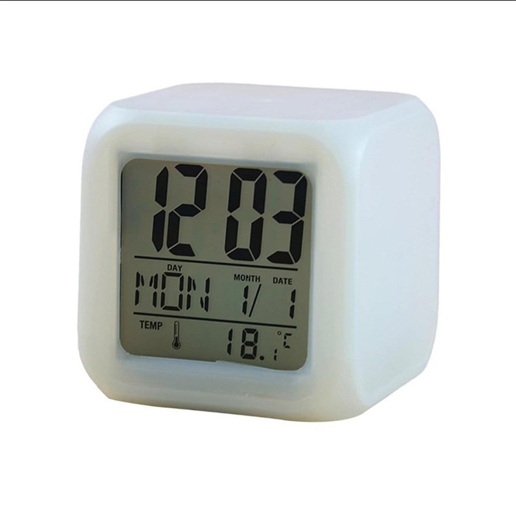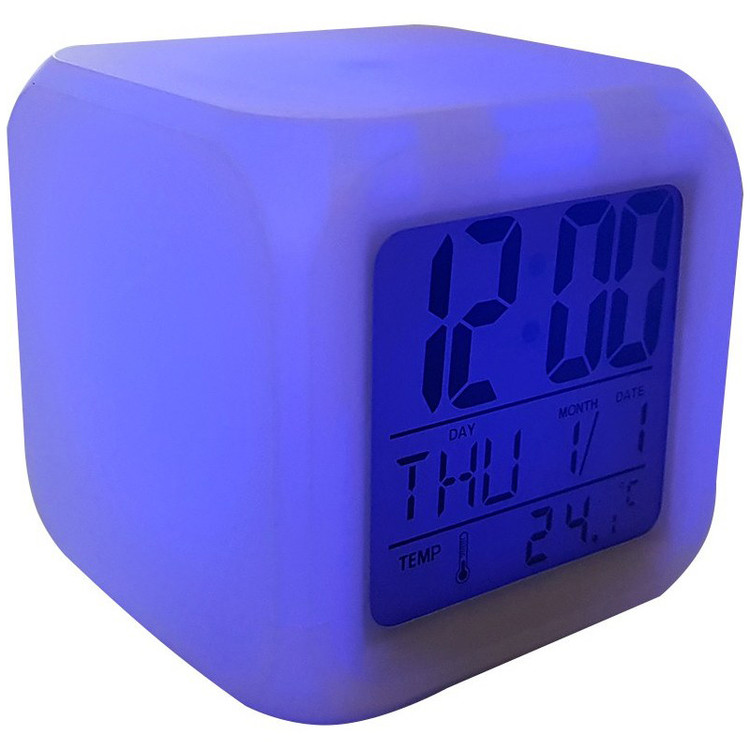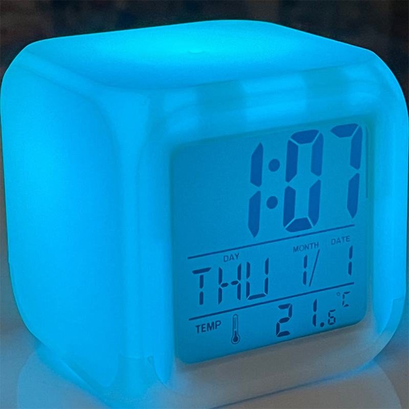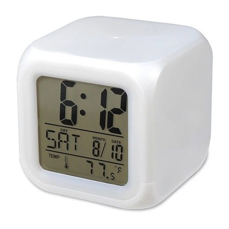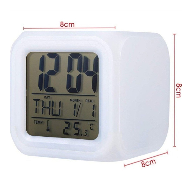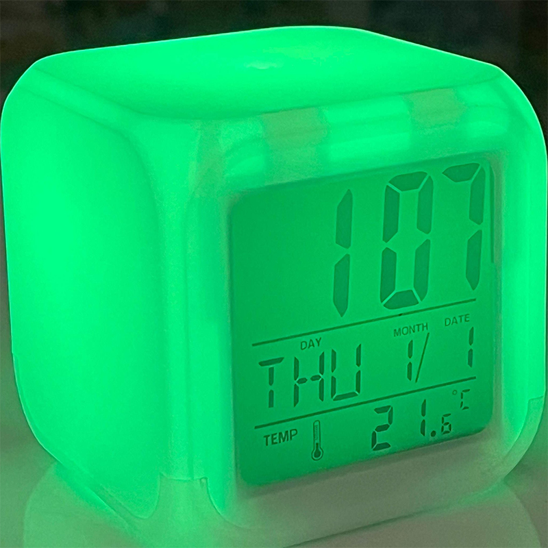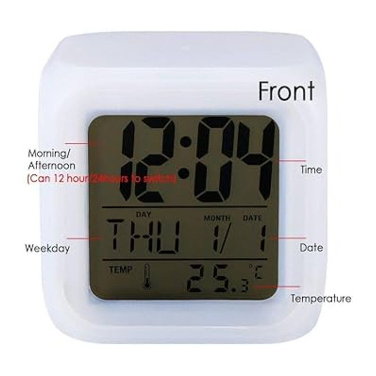 این ساعت با عنوان Color Change Digital Alarm Clock معرفی شده و مجهز به glowing LED است؛ یعنی چراغهای LED داخلی میتوانند در هنگام فعال شدن، کل بدنه مکعب را روشن کنند. بدنه سفید ساعت باعث میشود روشنایی LED ها در زمان فعال شدن، جلوهای یکدست و زیبا ایجاد کند. طبق توضیحات، هنگام فشردن مکعب به سمت پایین، چراغهای داخلی روشن شده و بهصورت هفترنگ تغییر رنگ میدهند و پس از چند ثانیه خاموش میشوند. این عملکرد باعث میشود مکعب مانند یک چراغ تزئینی کوچک بدرخشد.
