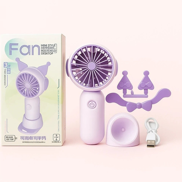 پنکه شارژی سه سرعته مدل دستی و رومیزی طرح گوش دار